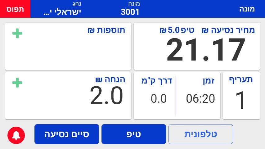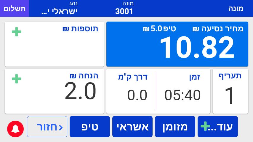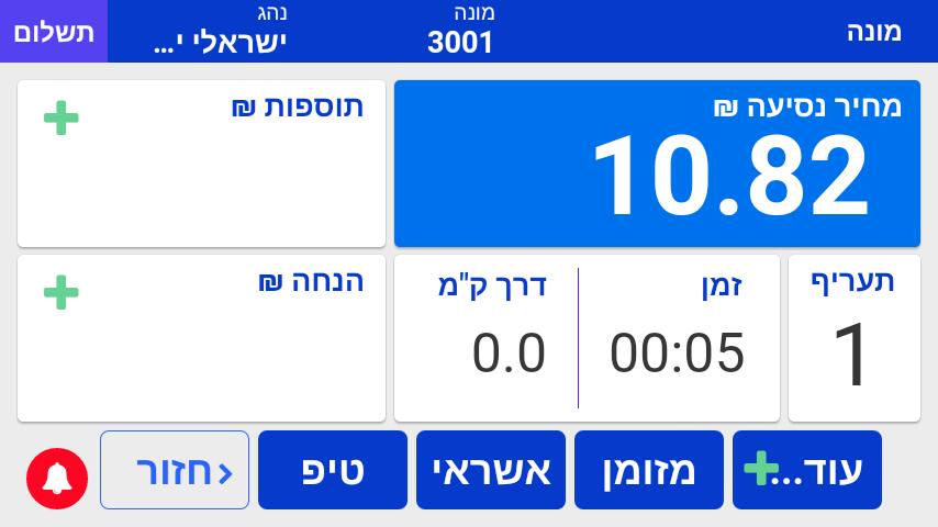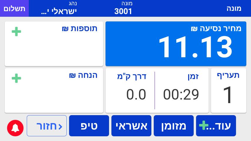 הפעלת המונה ותחילת נסיעה חדשה.