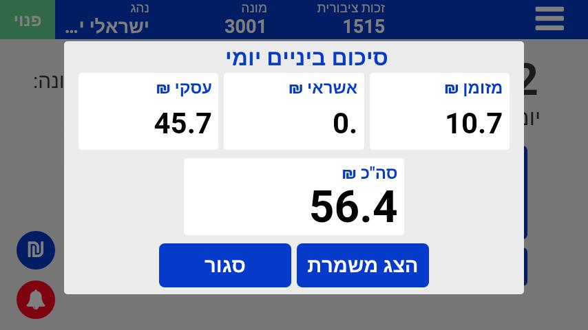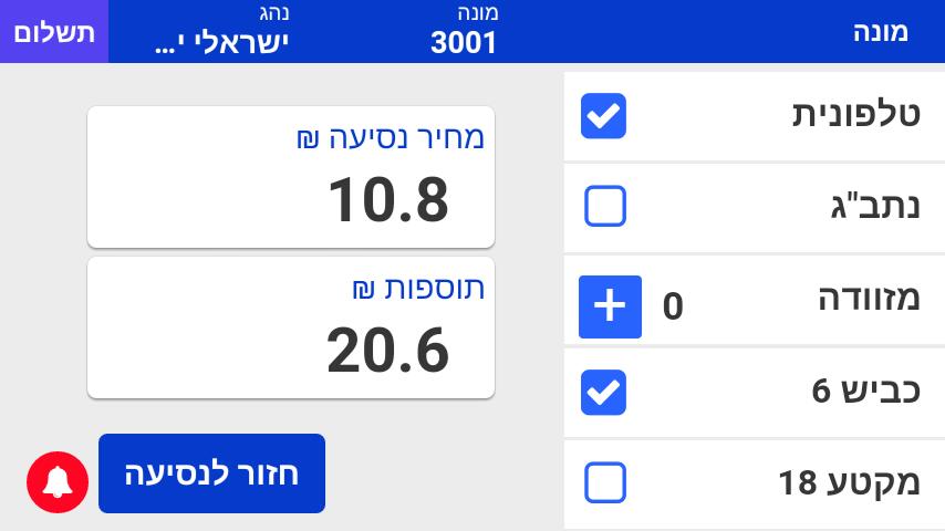 סגירת נסיעה ובחירת אופן התשלום.