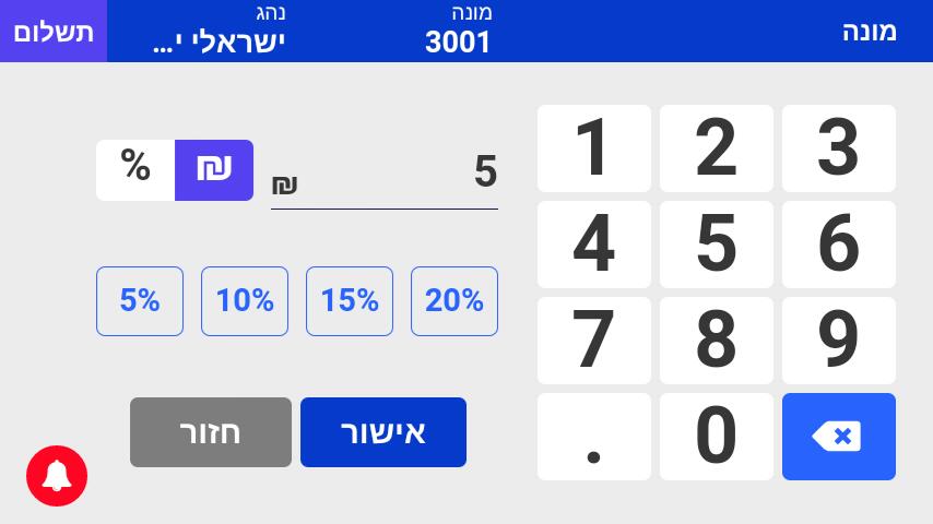 הוספת טיפ לחשבון הסופי.
